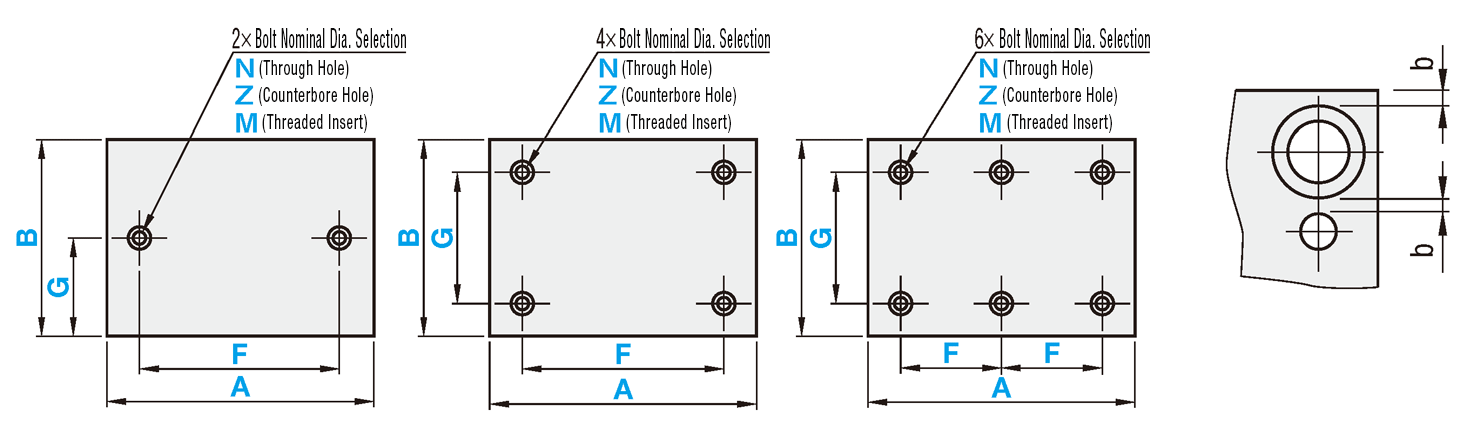 | N (Through Hole) | Z (Counterbored Hole) | N (Through Hole) / Z (Counterbored Hole) Details | M (Threaded Insert) | ■Table 1 M (Thread Insert) Details | |||||||||||||||||||||||||||||||||||||||||||||||||||||||||||||