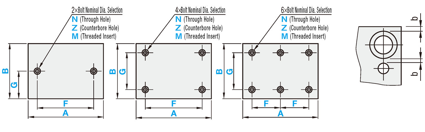 N (Through Hole)Z (Counterbored Hole)N (Through Hole) / Z (Counterbored Hole) DetailsM (Threaded Insert)■Table 1 M (Thread Insert) Details