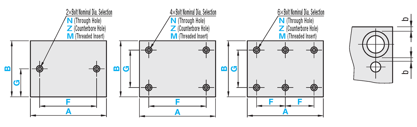 | N (Through Hole) | Z (Counterbored Hole) | N (Through Hole) / Z (Counterbored Hole) Details | M (Threaded Insert) | ■Table 1 M (Thread Insert) Details | |||||||||||||||||||||||||||||||||||||||||||||||||||||||||||||